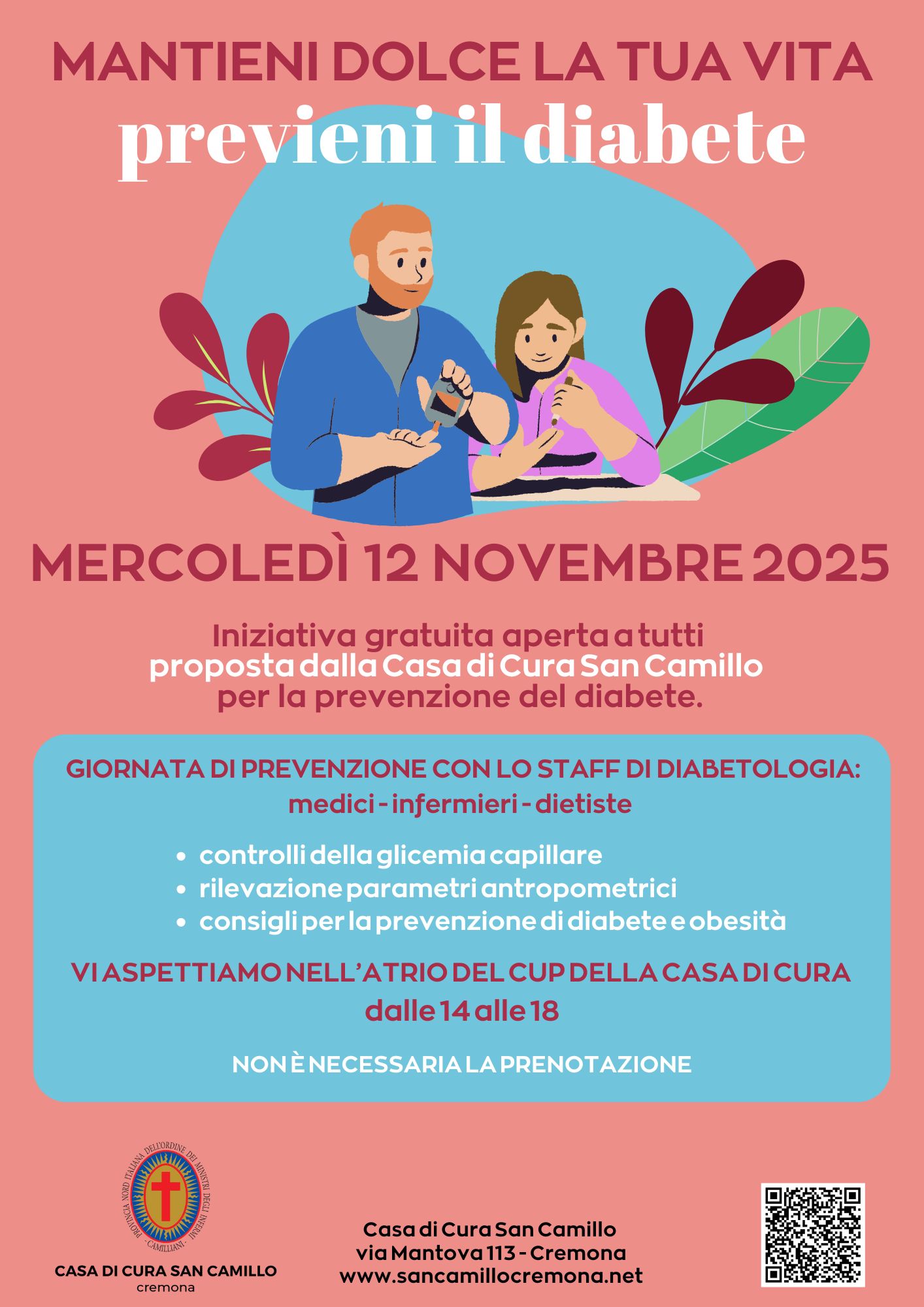 La prevenzione è il primo passo per prendersi cura di sé. Ecco perché la Casa di Cura San Camillo di Cremona promuove un’importante iniziativa dedicata alla prevenzione del diabete, malattia silenziosa in forte crescita, che in Italia colpisce oltre 4 milioni di persone.